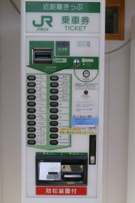 南口の券売機。 なんとも簡素化されたもので、いかにもローカル線っぽいです。 |