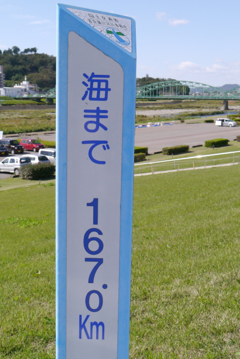 また、歌碑に戻り、再度、森高さんの歌を最初から最後まで聞きました。曲の終わりとともに、太陽が沈んでいきました。 今回は夏だったため、太陽は橋の北側に沈みましたが、10月頃にはちょうど川面に沈んでいくのではないでしょうか? 本当にこの歌が好きな人は初冬に出かけて、河原で風邪を引きましょう。 |