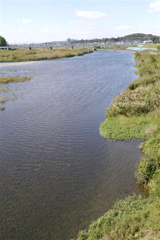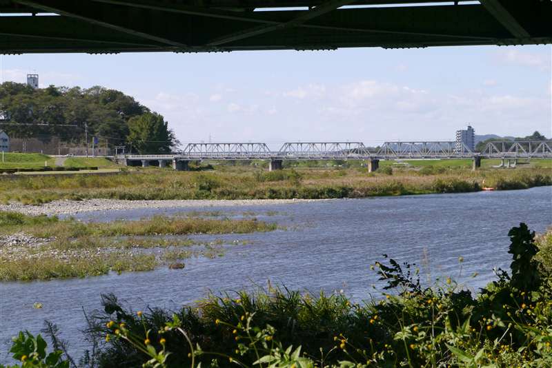 中橋のたもとから、遠くの渡良瀬橋を展望 |