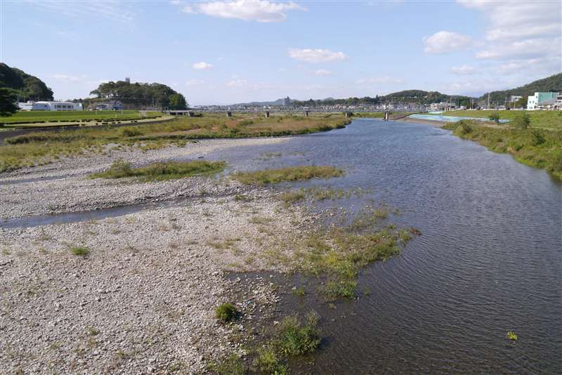 この橋が緑橋。 河原に下りました。 |